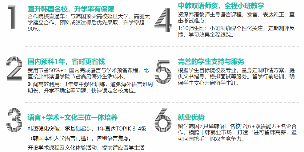 根据学生目标专业(如商科、理工、人文艺术),提供差异化学术课程模块(如经济导论、基础编程、韩国文学入门)。